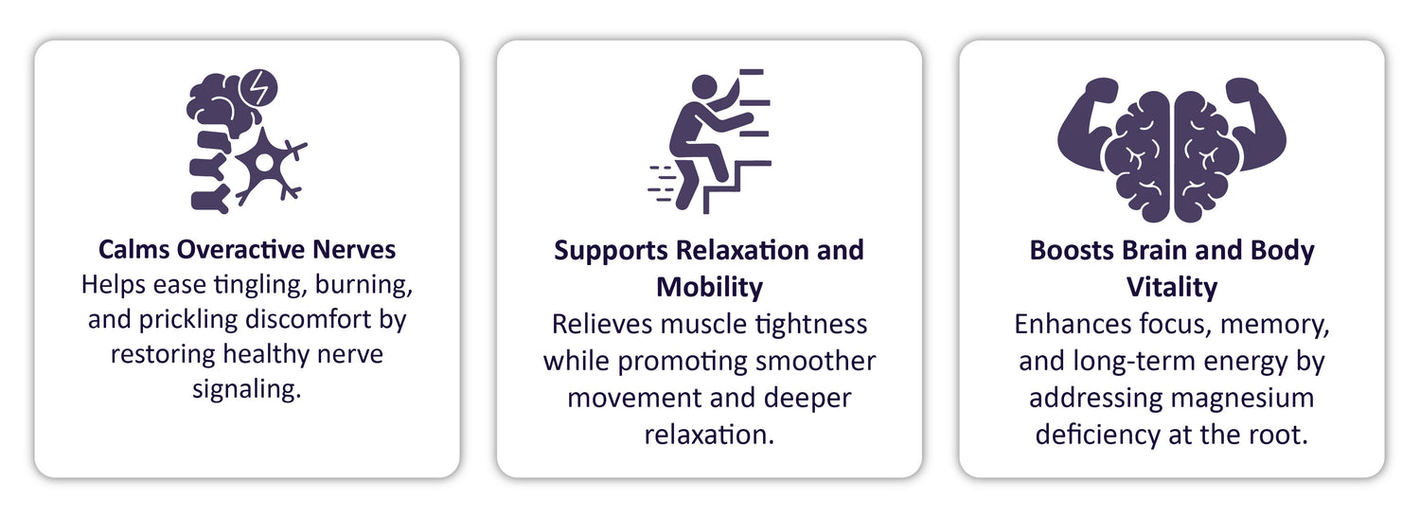 Our advanced Triple Magnesium + Joint Support Complex helps restore flexibility, reduce discomfort, and keep you active — every single day.